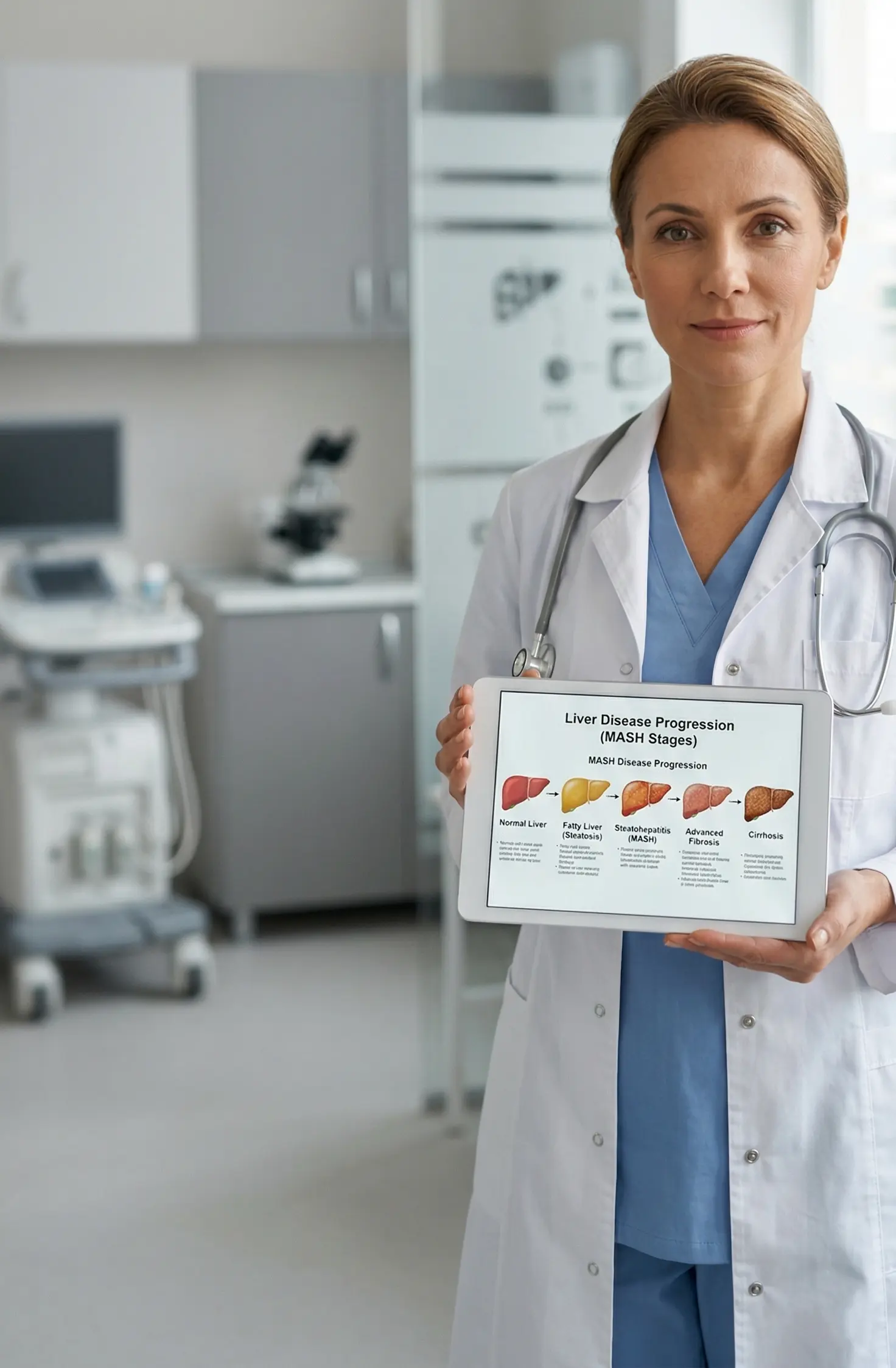 MASH (Metabolic Dysfunction-Associated Steatohepatitis) develops in stages. Understanding these stages shows why early diagnosis and treatment are important.